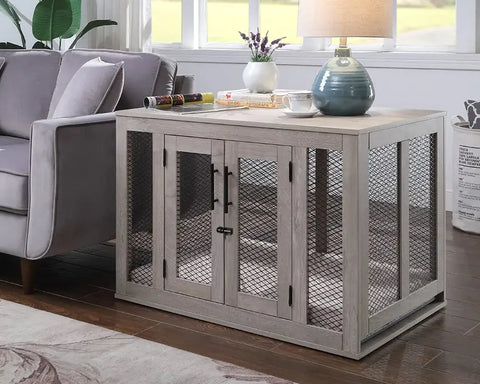 Available in Weathered Grey, Rustic, and Walnut, this decorative pet crate seamlessly complements any interior style, from modern to farmhouse chic.