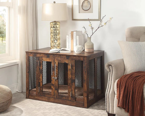 Designed to blend seamlessly with your décor, this dog crate also functions as a side table or nightstand, offering both style and comfort for your pet.