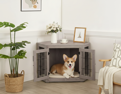 Designed to blend seamlessly with your décor, this crate doubles as a functional side table while giving your dog a safe and cozy retreat.