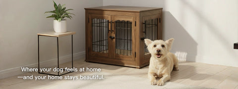 Designed to blend seamlessly with your décor, this crate doubles as a functional side table while giving your dog a safe and cozy retreat.