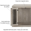 The crate is made of durable pressed wood and metal enclosure bars, combining sturdiness with a stylish appearance.