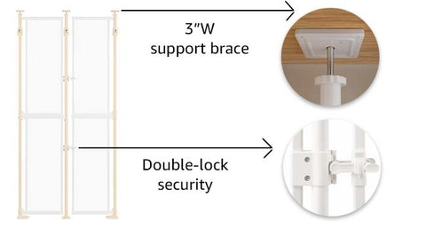The gate must be aligned perfectly level. If doors overlap or resist closure, try adjusting the pressure mounts and top angle of the gate.